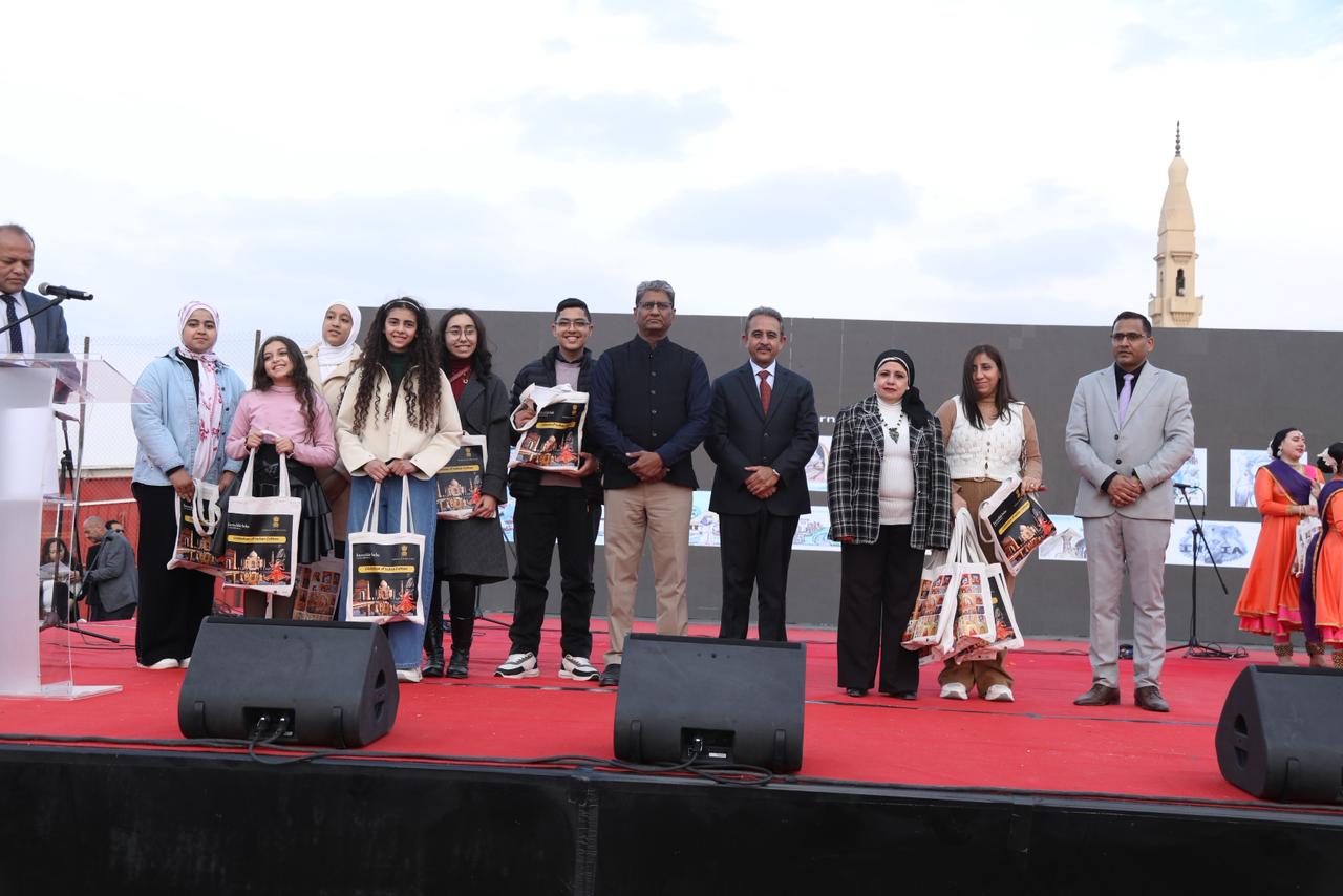 نظمت سفارة الهند بالقاهرة حفل توزيع جوائز لتكريم الفائزين في الدورة التاسعة والعشرين من مسابقة الرسم «لمحات من الهند»، والتي أُقيمت خلال الفترة من 2 إلى 24 نوفمبر 2025، وذلك بالتعاون مع وزارة التربية والتعليم في جمهورية مصر العربية.